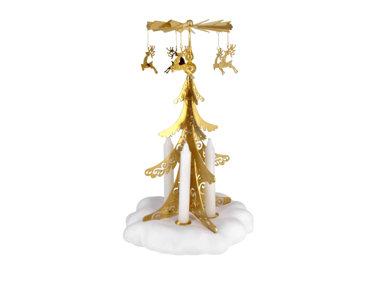 Елочная игрушка выполнена в виде стилизованной елки и сочетает несколько технологий производства. Основные декоративные элементы изготовлены из латуни методом лазерной резки, что обеспечивает точность и чистоту линий. Фигурный шпиль выполнен методом литья и дополняет конструкцию.